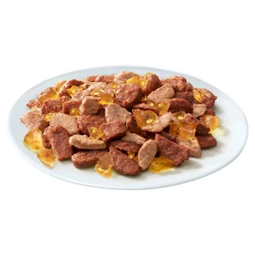 - Adult cat food in jelly with zinc and sunflower oil, a natural source of omega 6 fatty acids, which help to support a healthy skin & coat