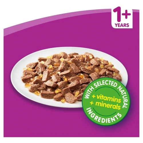 Delicious cat food slices for a convenient and fresh feline meal. Our Whiskas 1+ range offers a variety of tailored cat food meals, that are perfectly balanced to help your cat stay happy and healthy. These 100g Whiskas cat food pouches are available in a variety of tastes and textures. Whiskas delicious cat food in jelly meals and cat treats are formulated for your cat’s diet. A 100% Complete and Balanced pet food. 100g Whiskas wet cat food pouches Fish in Jelly.