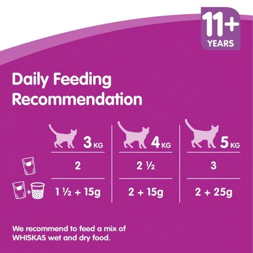 The Whiskas 11+ range offers a variety of tailored meals, with taurine to help your cat maintain a healthy heart. Our tasty meals, made with a combination of selected natural ingredients, vitamins, minerals to provide everything your cat needs for a healthy life and strong natural defences.