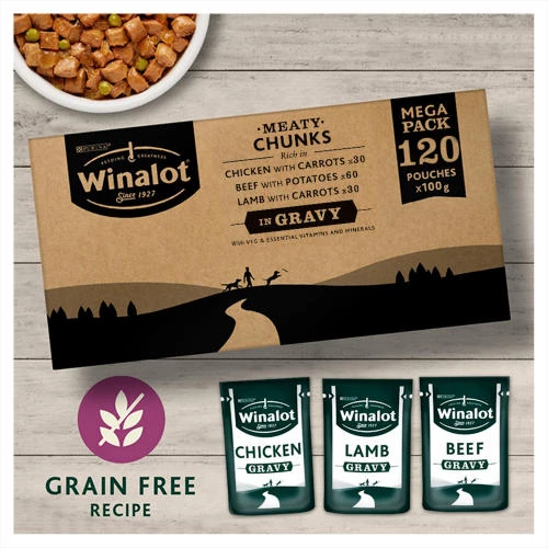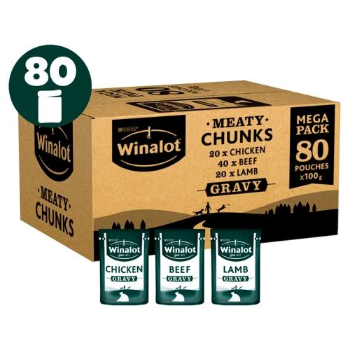 Winalot Meaty Chunks Mixed in Gravy Wet Adult Dog Food is a delicious, complete & balanced food that provides your pooch with all the nutrients they need. Helps to support a shiny coat, healthy skin as well as a healthy digestive system – Winalot Perfect Portions Multipack Wet Adult Dog Food is as good for your dog as it is delicious!