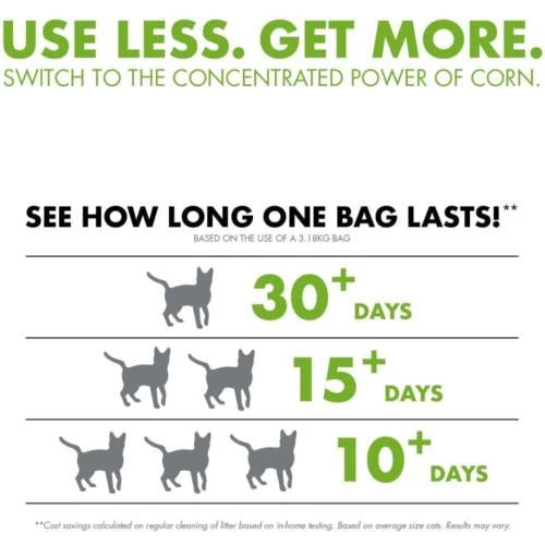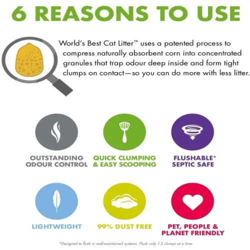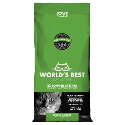 Worlds Best Cat Litter Original Clumping Formula has outstanding odour control and tight clumping ability, World’s Best Cat Litter Original Unscented formula harnesses the power of  naturally absorbent corn to deliver 2X longer lasting performance than the leading US litter brand. This naturally safe solution allows cat lovers like you to smell less, clean less and buy less. This formula is ideal for homes with 1 or 2 cats.